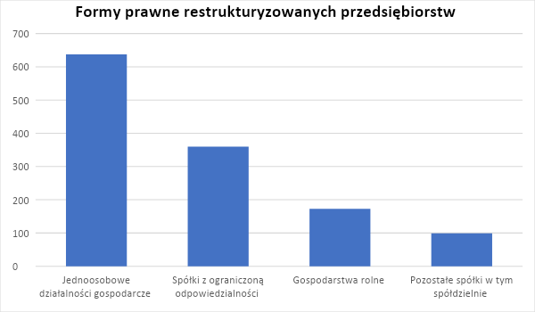 Z opublikowanych w Monitorze Sądowym i Gospodarczym obwieszczeń wynika również, że ten sposób restrukturyzacji był najwcześniej wybierany przez osoby prowadzące działalność gospodarczą: 637 podmiotów, co stanowiło ponda 50 % ogółu podmiotów wobec których otwarto uproszczone postępowanie restrukturyzacyjne. Na dalszym miejscu były: spółki z ograniczoną odpowiedzialnością w liczbie 360 (28 % ogółu ) i gospodarstwa rolne w liczbie 173 (ok. 14 % ogółu ).